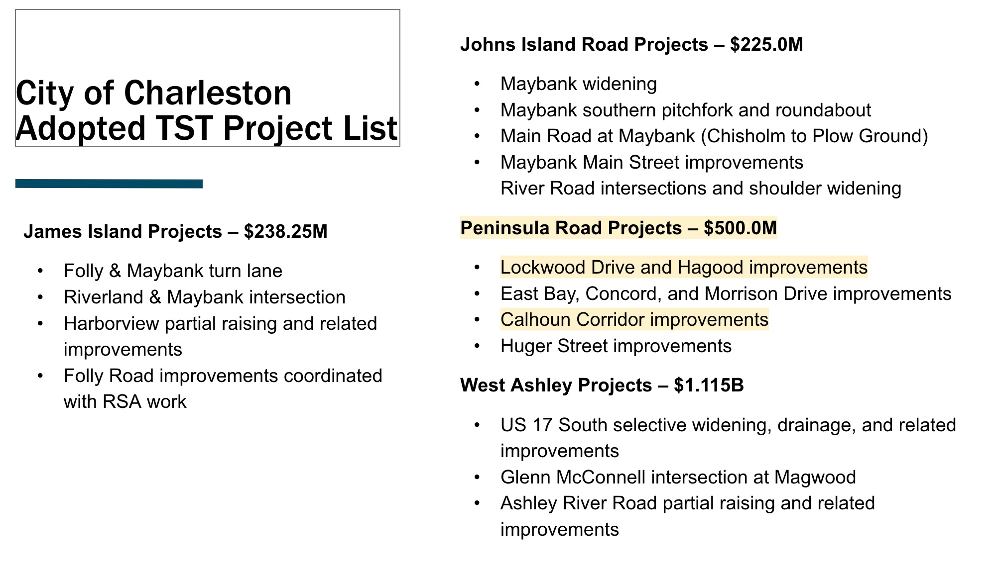 City of Charleston Adopted TST Project List (December 16 City meeting)